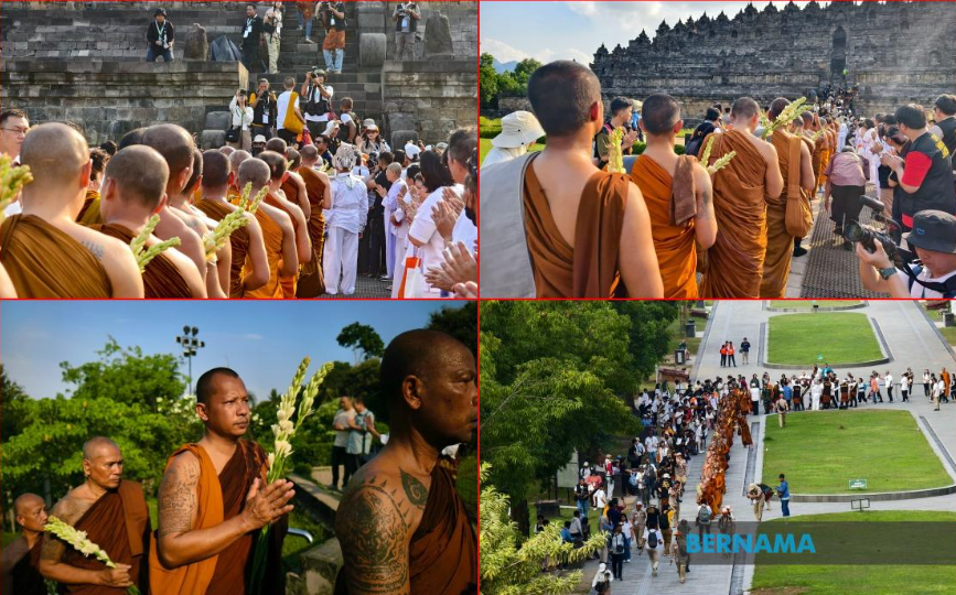 via Bernama, 22 May 2024: Forty monks from Thailand, Singapore, Malaysia, and Indonesia completed a 60-kilometer Thudong pilgrimage to Borobudur Temple in Yogyakarta for Vesak Day. This spiritual journey, led by Bhante Chuan of Johor Bahru, celebrates the birth, enlightenment, and passing of Gautama Buddha, reflecting their commitment to enlightenment and harmonious living.