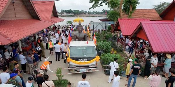 The statue was paraded from a pavilion by the Mekong River to Thongthip Phatthanaram temple in Yaitonpheung village, where it will be housed for the foreseeable future.